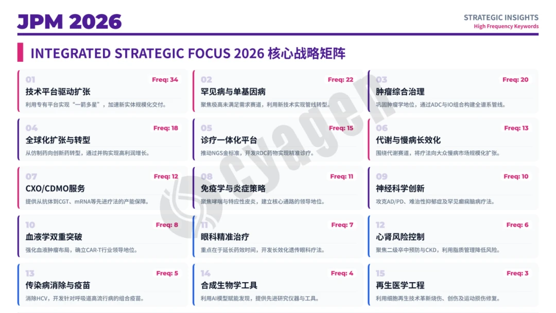 不同于泛泛的会议记录,本报告从数百家参会机构中严选 109 家核心样本, 这些样本覆盖全球顶尖 MNC、中坚 BioPharma 及高增长 Biotech, 精准捕捉全球医药研发从资本博弈回归临床价值的结构性转型。